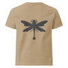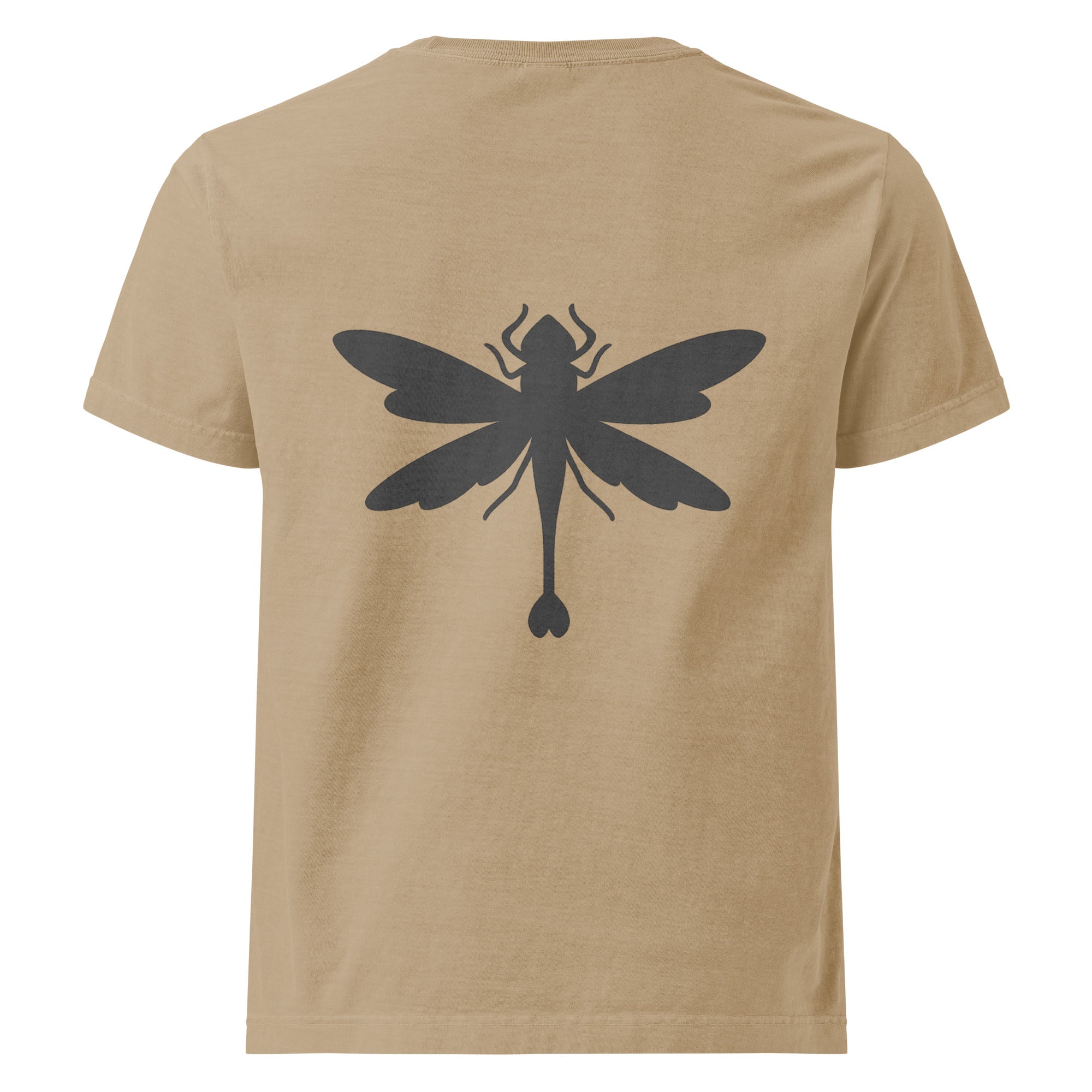 • Bold dragonfly graphic on the back; subtle text design on the front
