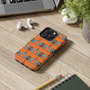 Brighten up your day with our eye catching Dragonfly phone case. Featuring a lively pattern of intricately detailed dragonflies on a warm vibrant orange background, this design brings a touch of nature-inspired charm and elegance to your everyday essentials. The dragonflies, symbolic of transformation and freedom, flutter gracefully across the case, creating a dynamic yet soothing visual effect. This case not only protects your phone but also adds a pop of color and a hint of personal style that's perfect for anyone looking to stand out. It's the perfect blend of function and flair.